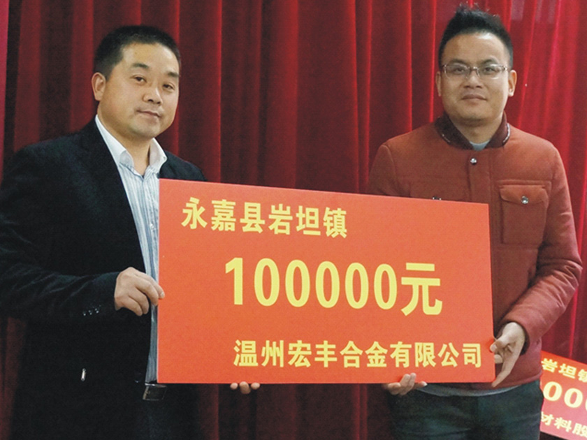 2月5日,溫州宏豐捐助十萬元為永嘉縣巖坦鎮(zhèn)扶貧幫困,傳遞了扶貧濟(jì)困、無私奉獻(xiàn)的宏豐正能量。