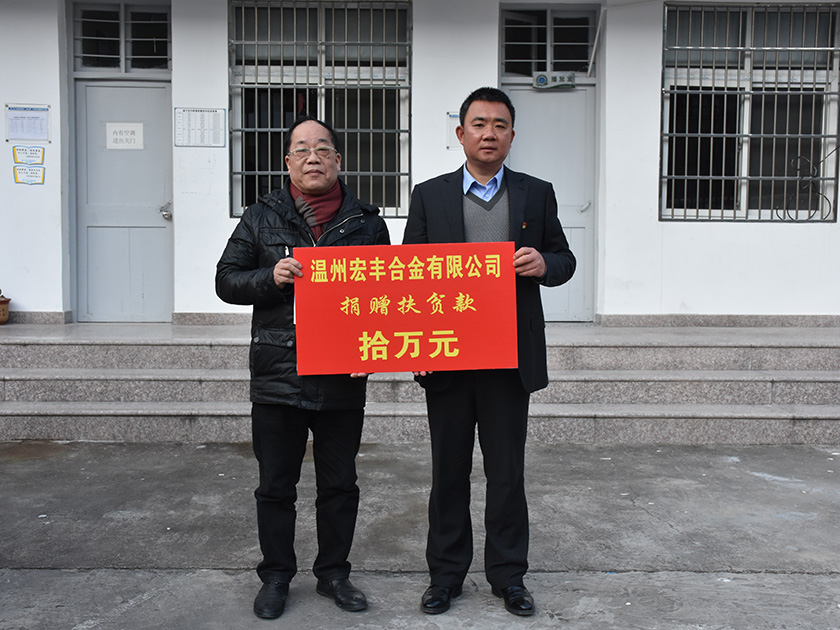 溫州宏豐合金有限公司扶貧濟困捐贈扶貧資金10萬元整榮譽證書。為堅決打贏脫貧攻堅戰(zhàn)再添動力。